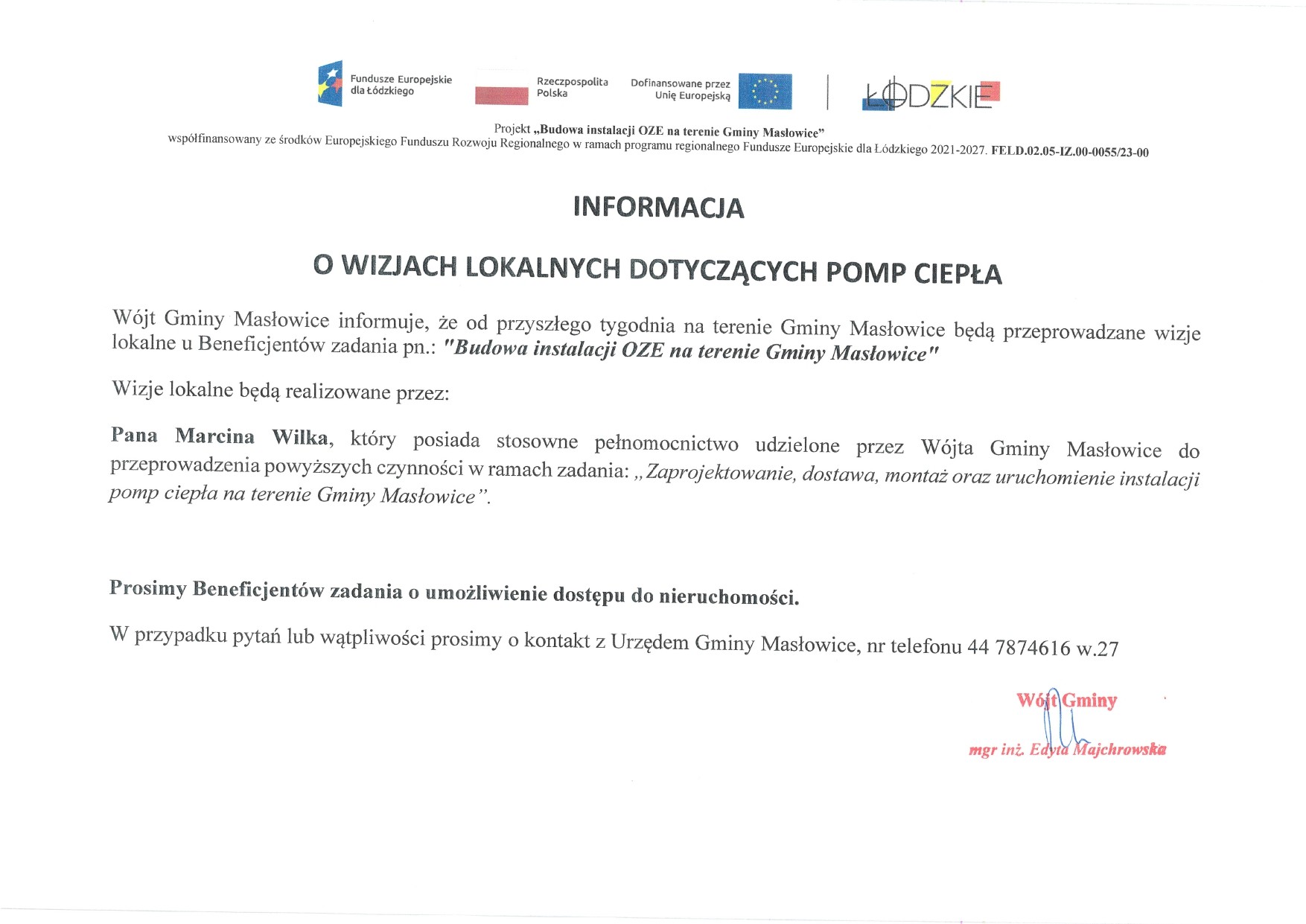 Gmina Masłowice realizuje to zadanie dzięki otrzymanemu dofinansowaniu z Funduszy Europejskich dla Łódzkiego, w ramach programu „Fundusze Europejskie dla Łódzkiego 2021–2027”.